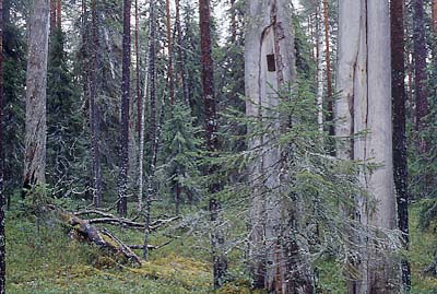 Satojen vuosien ikäisiä keloja. Huomaa kolot - lintujen kodit!